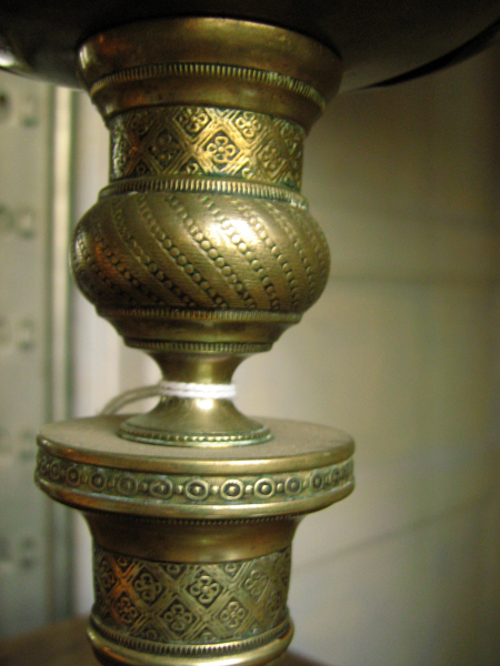 Brass candlestick (yellow copper) with its cup, finely chiseled,