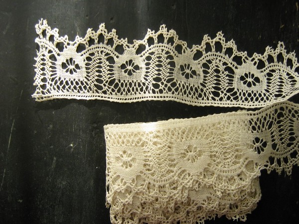 In very fine ecru linen thread, 5.5 cm x 2.80 m, old manual lace, new condition