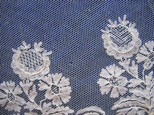 Col ancien de 15 cm de haut x 58 cm d'ampleur, motifs de bouquets appliqués